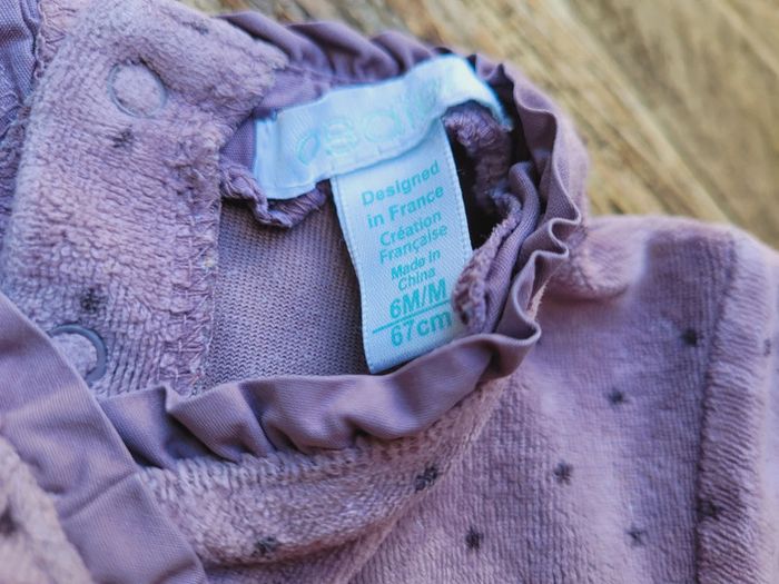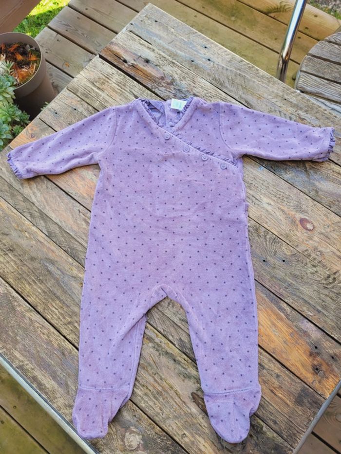 Superbe pyjama grenouillère velours Obaïbi, violet /mauve à poids, 6 mois