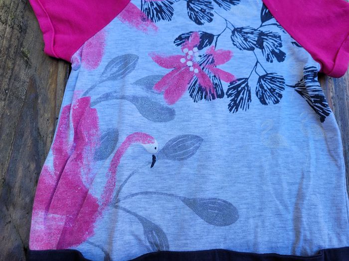 Très belle robe légère et confortable de la marque catimini, grise, rose fuchsia et violet foncé, motifs fleurs et flamant rose, fermeture éclair dans le dos, taille 4 ans, très bon état Pour voir mes autres articles en 4 ans : #4ansfillemooglou #catiminimooglou