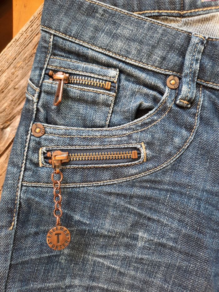 Superbe jeans de qualité Freeman T. Porter, couleur brut, de nombreux petits détails sympa, taille 25 qui correspond à un petit 36 français, très bon état