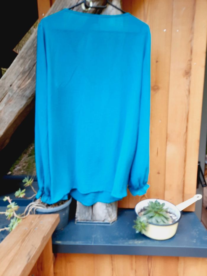 Superbe chemisier bleu/vert, taille L, col V, Benetton - photo numéro 3