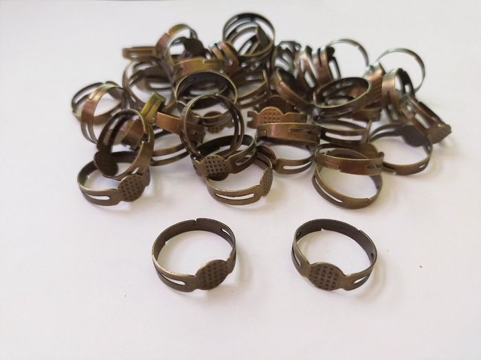 50 supports de bagues bronze en métal pour loisirs créatifs Paquet d'environ 50 support de bague De couleur bronze Ces bagues sont en métal Le support fait environ 8 mm Elles sont réglables