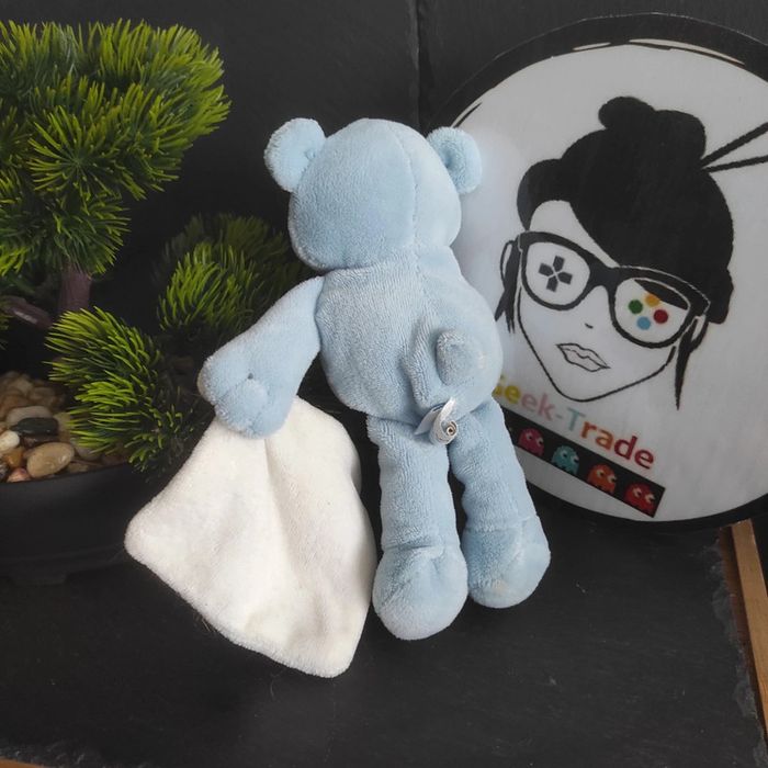 Doudou ours bleu mouchoir blanc Jacadi Paris Gris #geektradedoudou Bon etat Une trace sombre sur le côté du nez qui devrait partir au lavage voir photo Afin de ne pas abîmer les doudous et de laisser le choix dans l'utilisation de la lessive les peluches ne sont pas lavées avant envoi Description complément : #geektradejacadi Petit nettoyage à prévoir Vous achetez ce que vous voyez les photos font entièrement partie de la description Transport : Les frais de transport comprennent les frais du transporteur ainsi que l'emballage pour protéger au mieux votre achat. Chaque achat est envoyé en format colis avec numéro de suivi Le poids du colis est de 500g finit (je ne peux pas faire moins) il peut donc y avoir plusieurs objets dans le carton si vous le souhaitez (contactez moi afinde grouper les frais de port) Référencement : #geektradedoudou #peluche #plush  #doudou #enfant #bebe