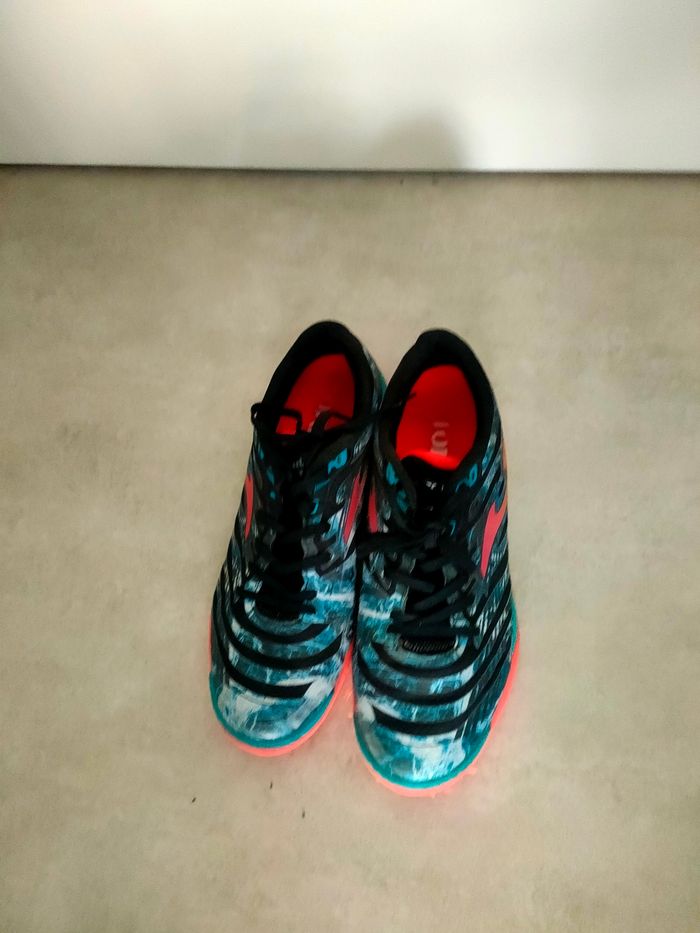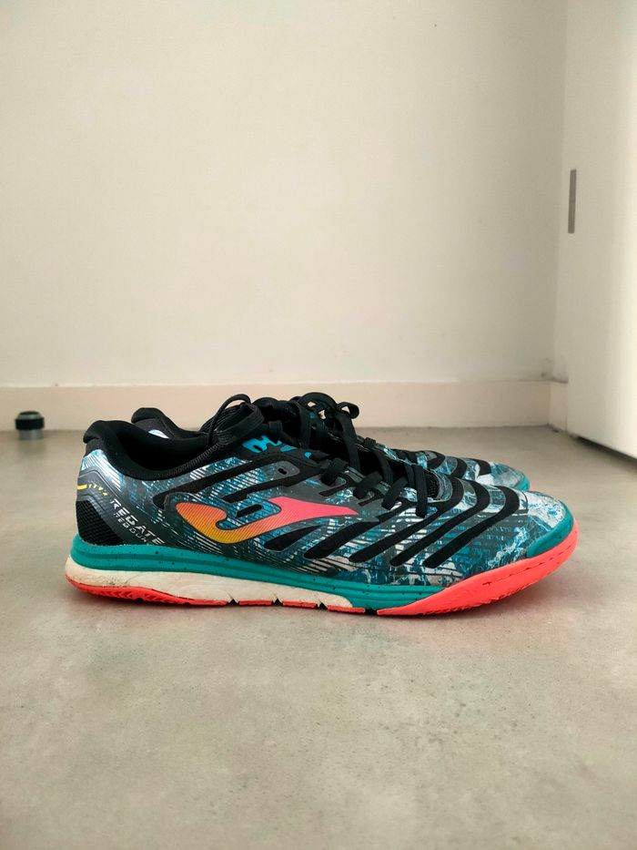 Chaussure de foot en salle JOMA. Très peu porté et sont en très bon état. Juste un petit fchaussure il qui dépasse.