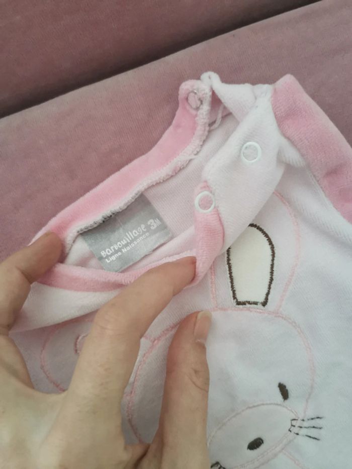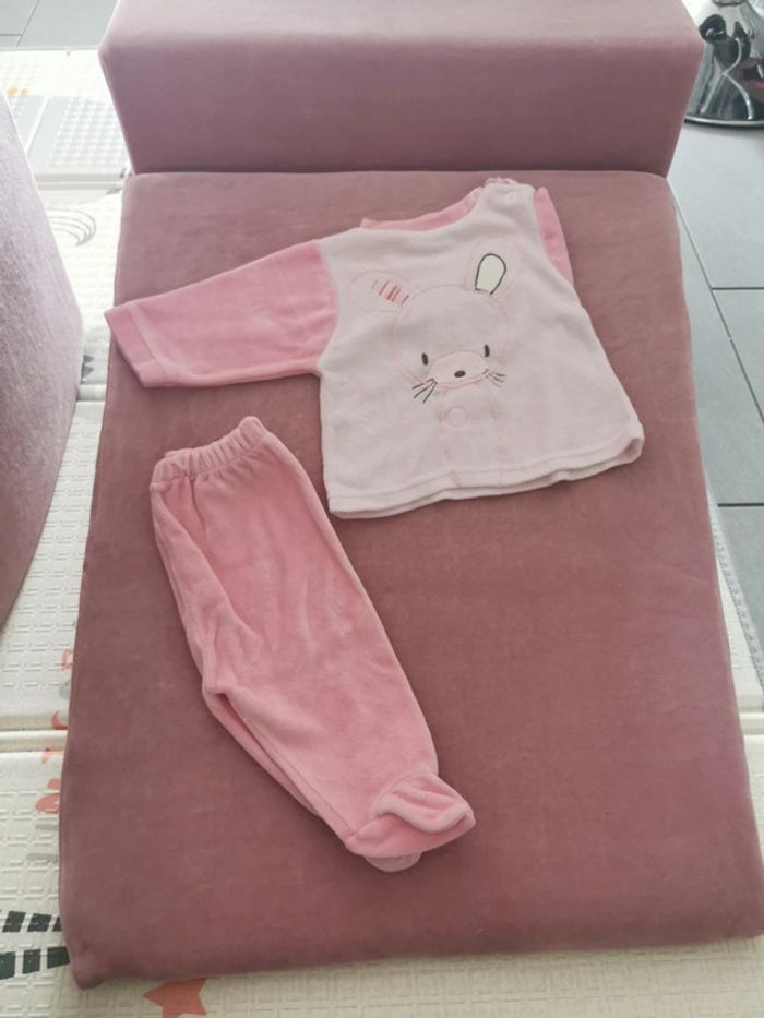 Pyjama 2 pièce taille 3m, ouverture pressions au col. Velours #jessica8513_03Moisfille #jessica8513_3Moisfille