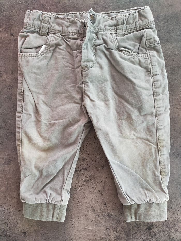 Pantalon tâché en bas des 2 jambes du pantalon et signe d'usure au genou tâché au niveau des poches arrières