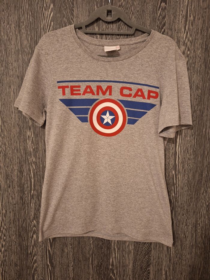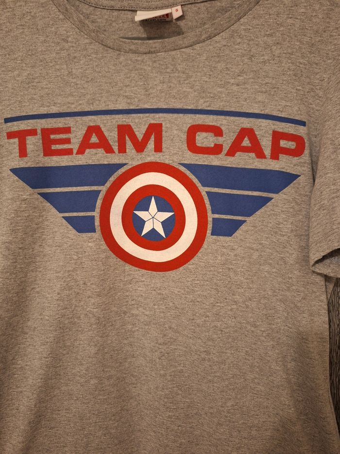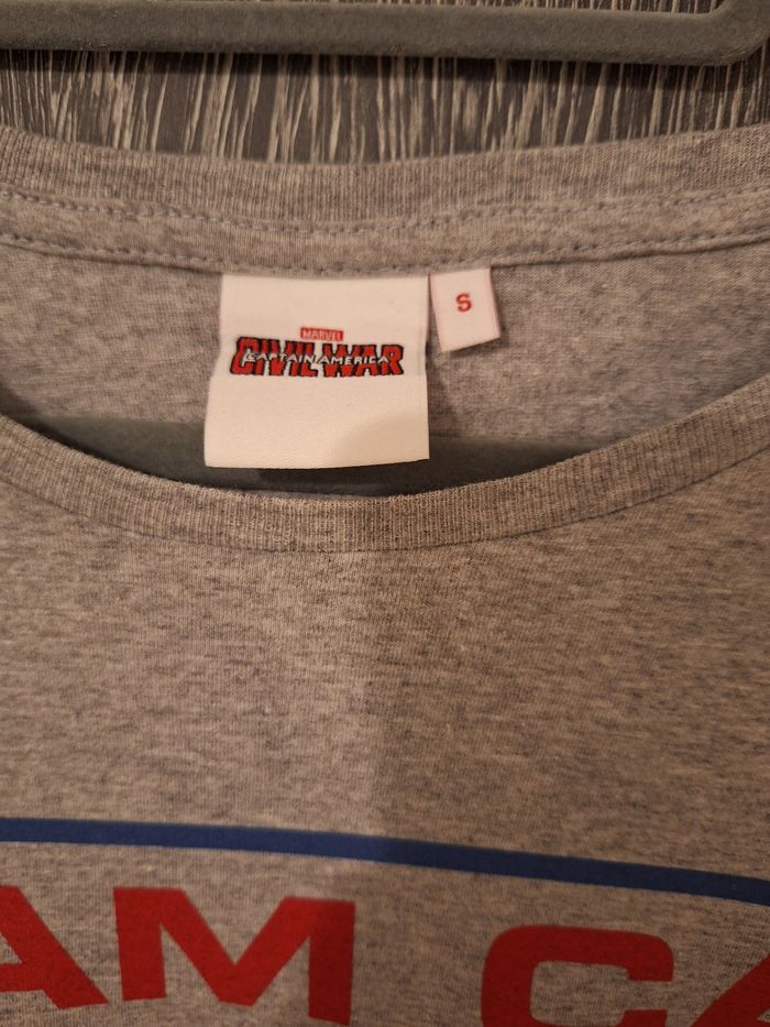 Bonjour ✴️Je vends ce tee-shirt neuf sans étiquette ✴️De la marque Marvel ( Captain America Civil War) ✴️Taille S(36) ✴️100% coton ✴️Gris chiné avec logo bleu blanc et rouge ✴️Manches courtes et col rond ✴️Mesurant 69cm de longueur depuis les épaules ✴️Mesurant 48cm de largeur d'épaules et d'aisselles
