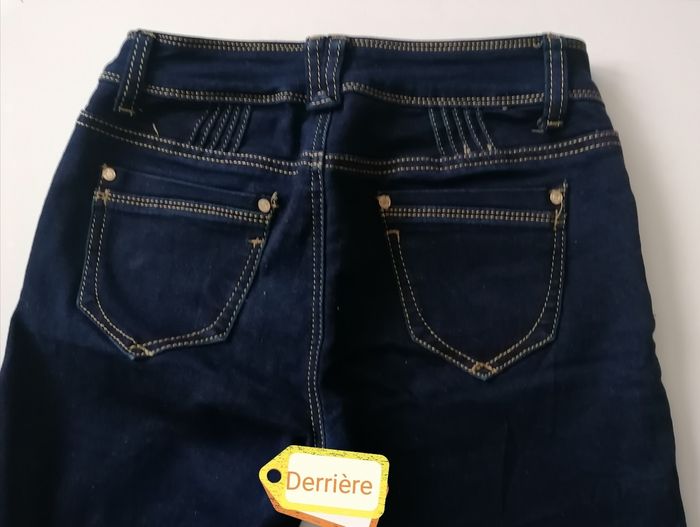 Panta court filles , taille S 2 poches devant et 2 derrière. Bleu marine 75%coton. 23%polyester. 2%elasthane. Porté une fois. 6.50€