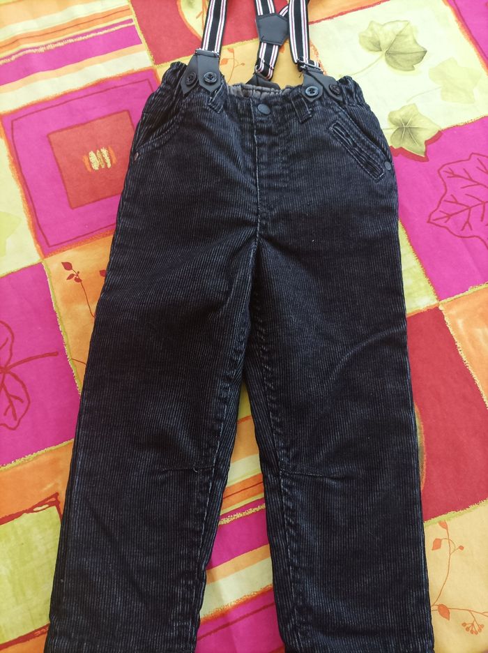 Pantalon velours noir doublé bretelles amovibles 2 ans
