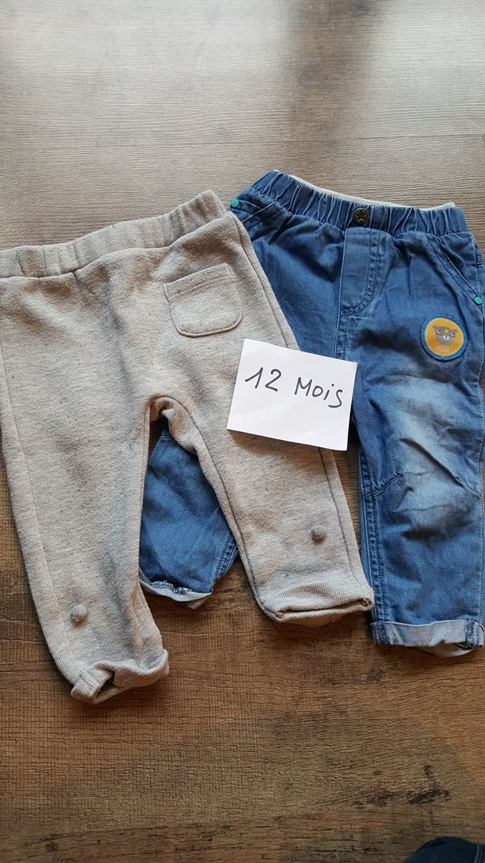 2 pantalons 12 mois. Marque Orchestra et marque inconnue ( étiquette enlevée par papa. ..)