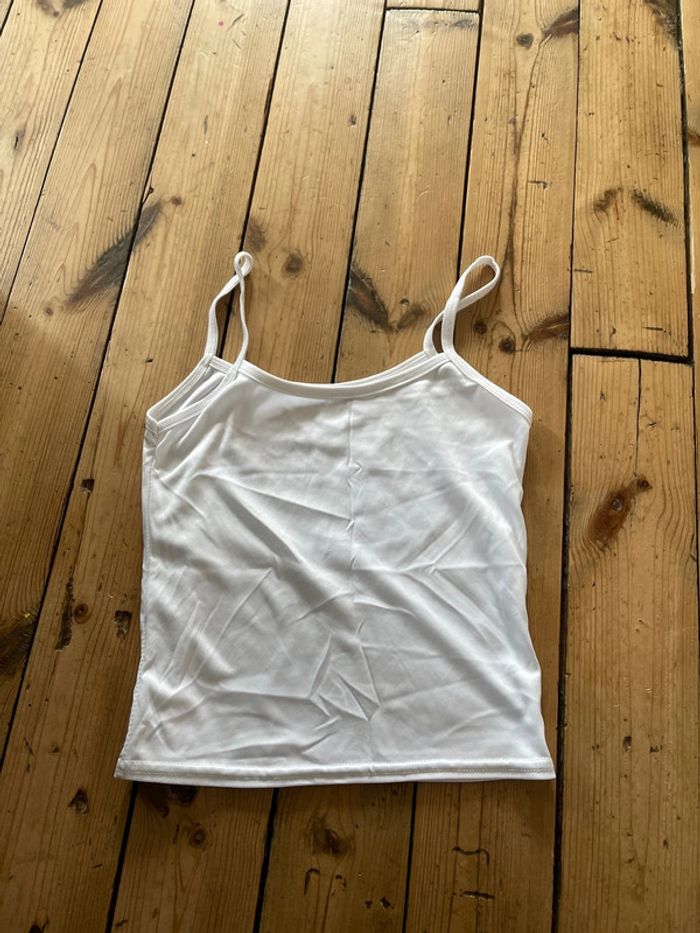 Débardeur blanc sans marque, il n’y a plus étiquettes, je pense que c’est du cinq ans