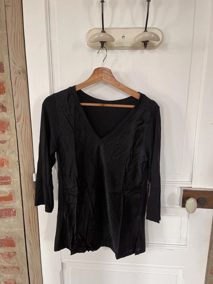 T-shirt manches trois quarts noir - photo numéro 1