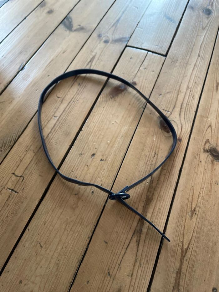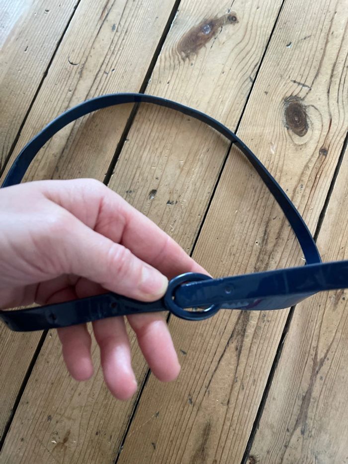 Ceinture en bon état. Le premier trou est à 63 cm.