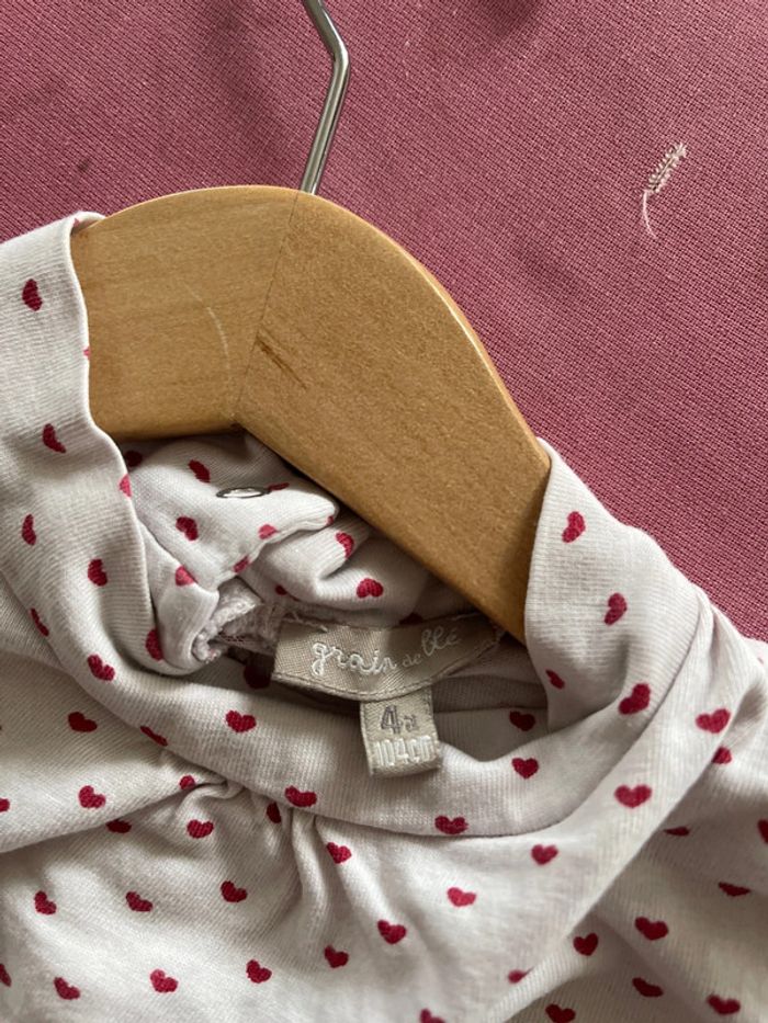 T-shirt manches longues, motif cœur, taille quatre ans, grains de blé