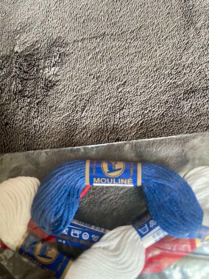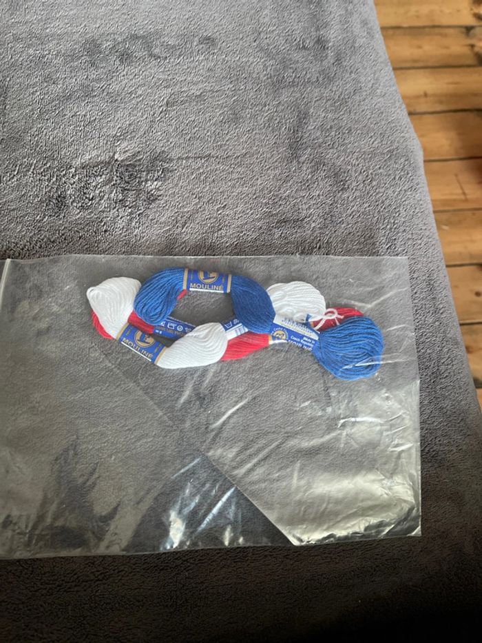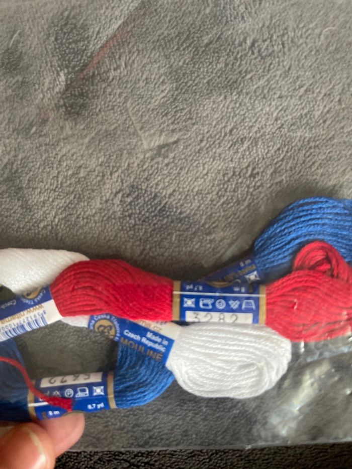Lot de fil neuf, jamais utilisé bleu, blanc rouge