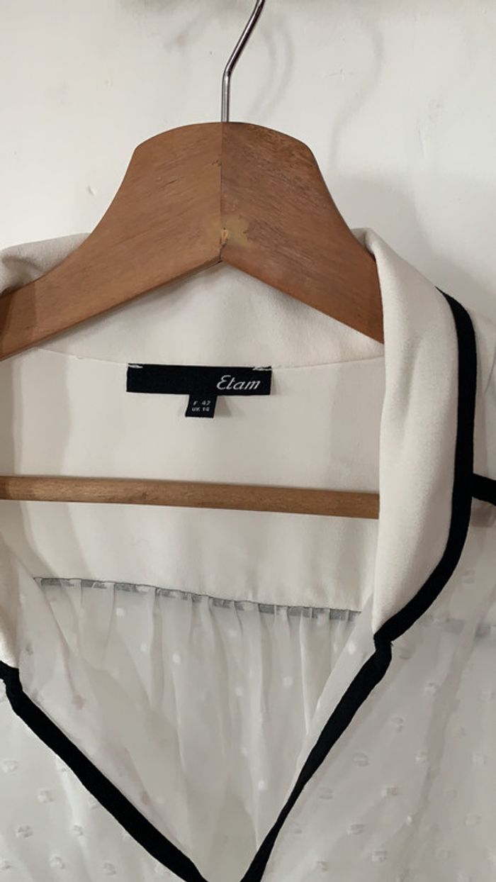 Chemise transparente à pois blancs en très bon état taille 42 étame il y a juste une petite tache voir photo sur le col qui je pense partira Facilement car jamais porté