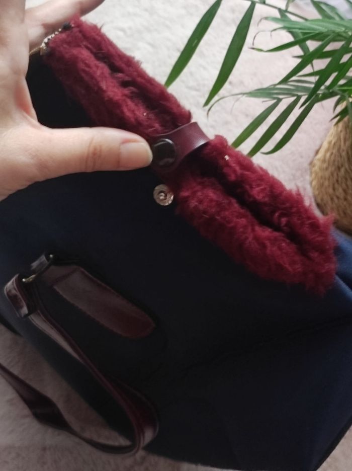 Grand sac pour transporter son petit compagnon, avec ouverture pour y passer la tête, fermeture éclair et fourré a l'intérieur, lanières en cuir. Dimensions Largeur 50 Hauteur 29 Profondeur 14,4