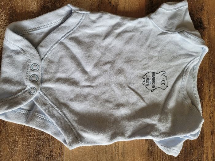 Petit bodie Manche court Couleur bleu clair Dessin Ours Taille 1 mois Mi saison Attaché en bas Matière 100% coton