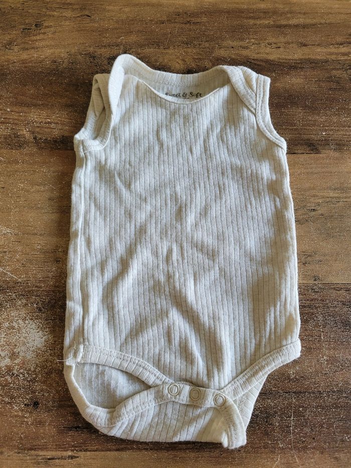 Petit bodie Sans manche Couleur beige Très simple Taille 3 mois Mi saison Attaché en bas Matière 100% coton Mixte