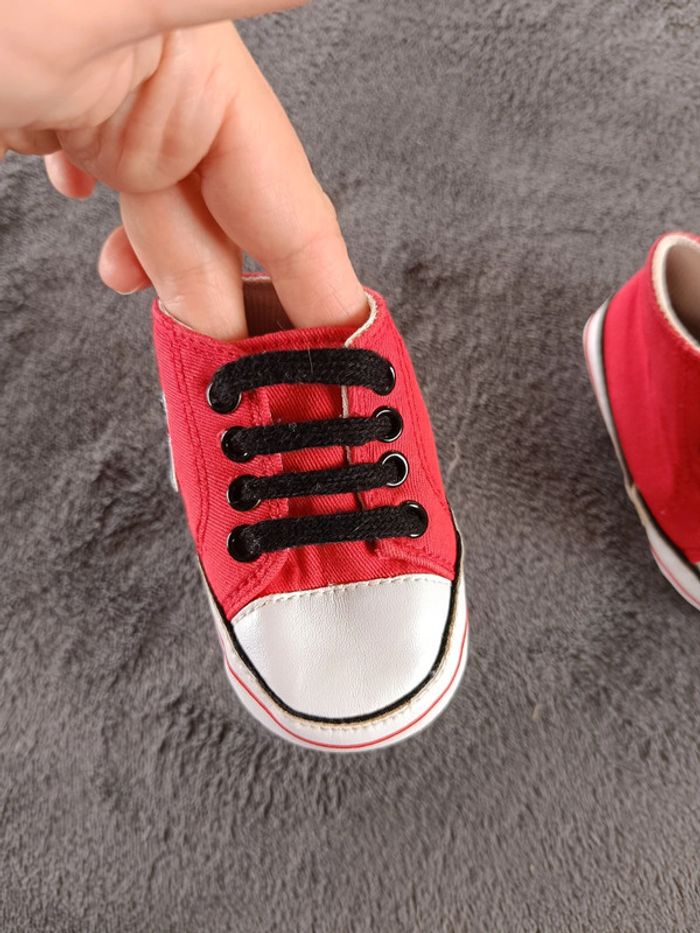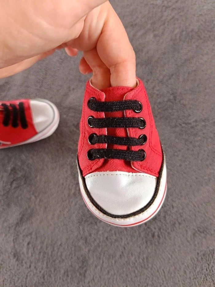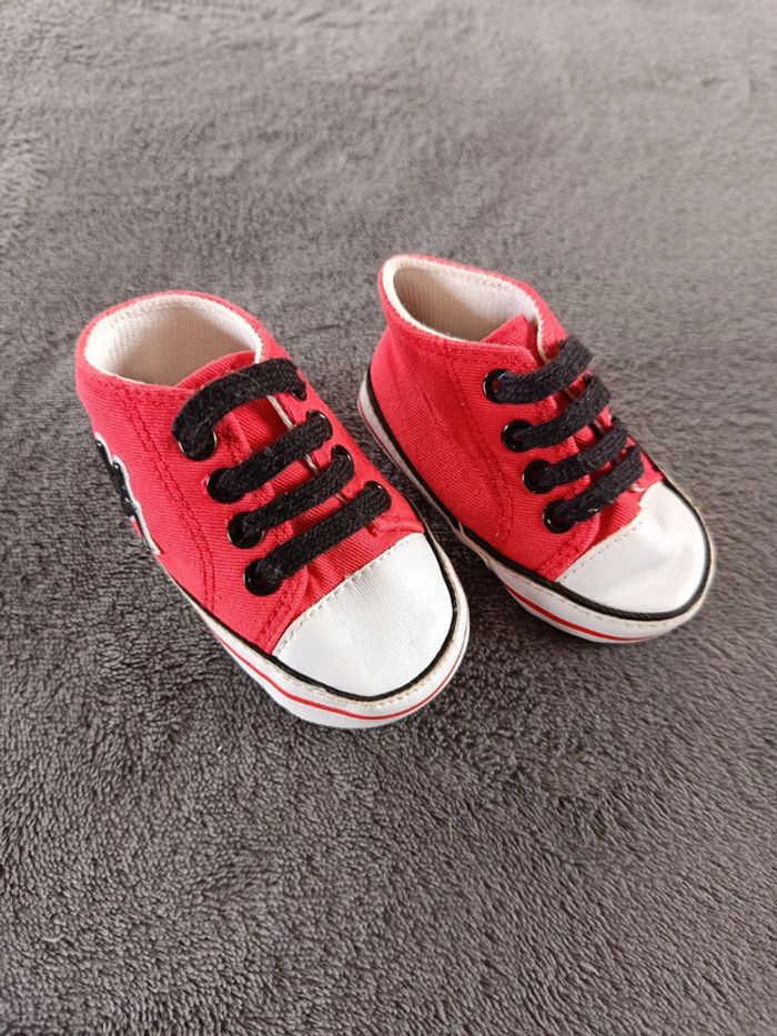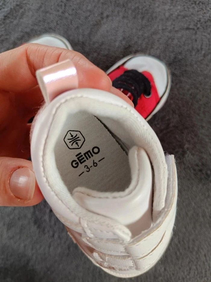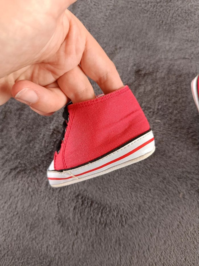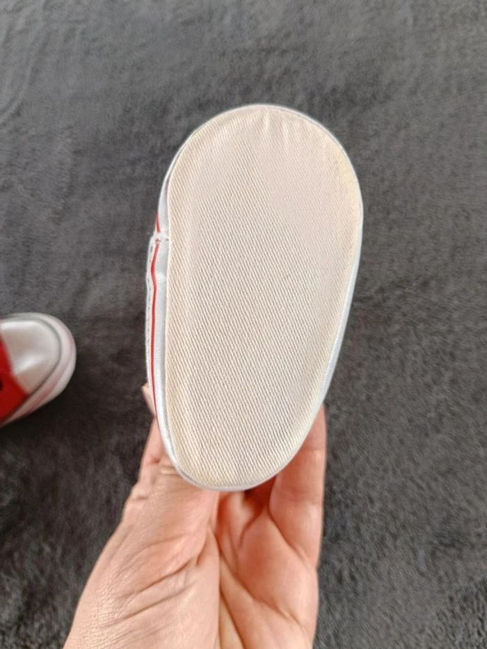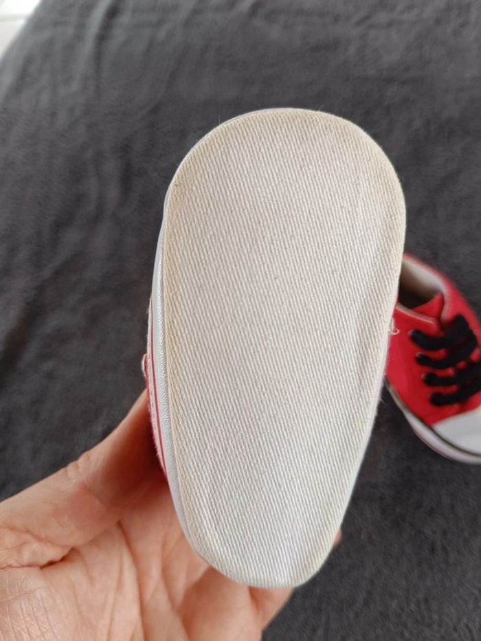 Très bon état général. Si on compare avec une autre paire, ça correspond à une taille 3/6 mois ce qui signifie une pointure de 17 d'après le tableau (voir la dernière photo). #nathatfcGarçonChaussures
