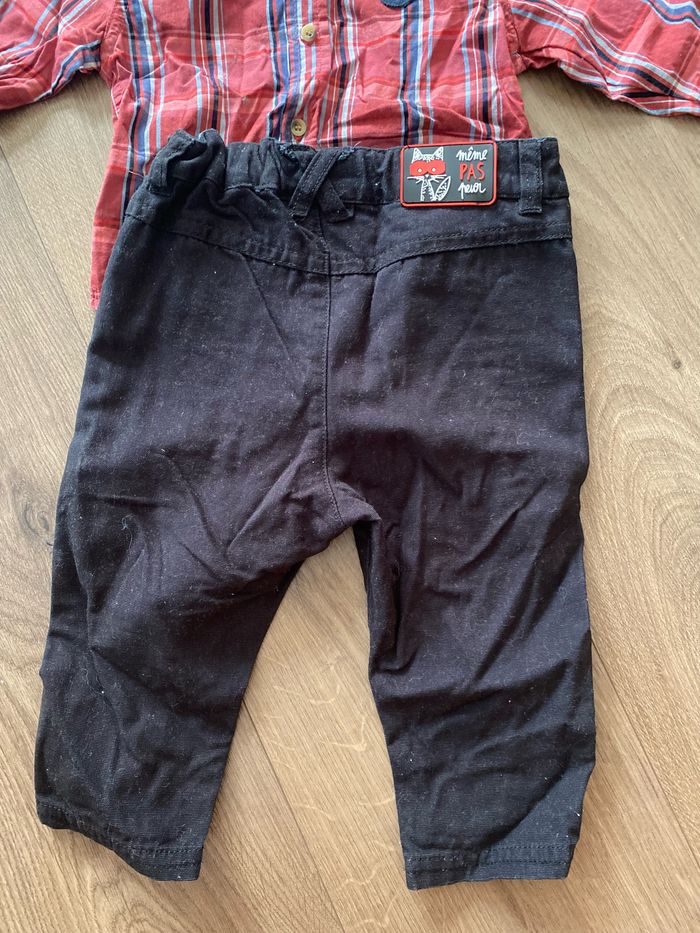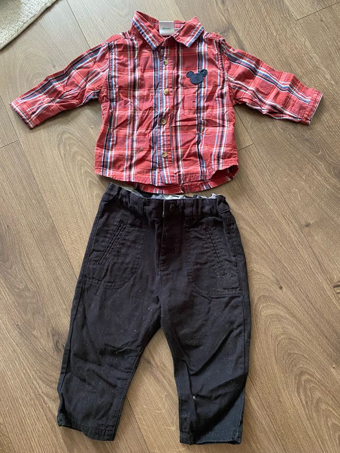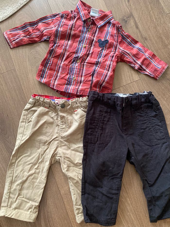 2 pantalons + 1 chemise Mickey Comme neuf.