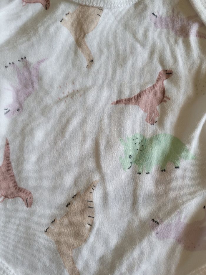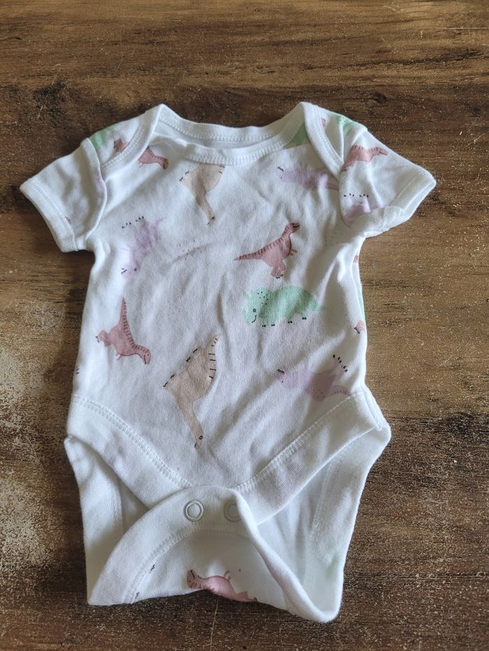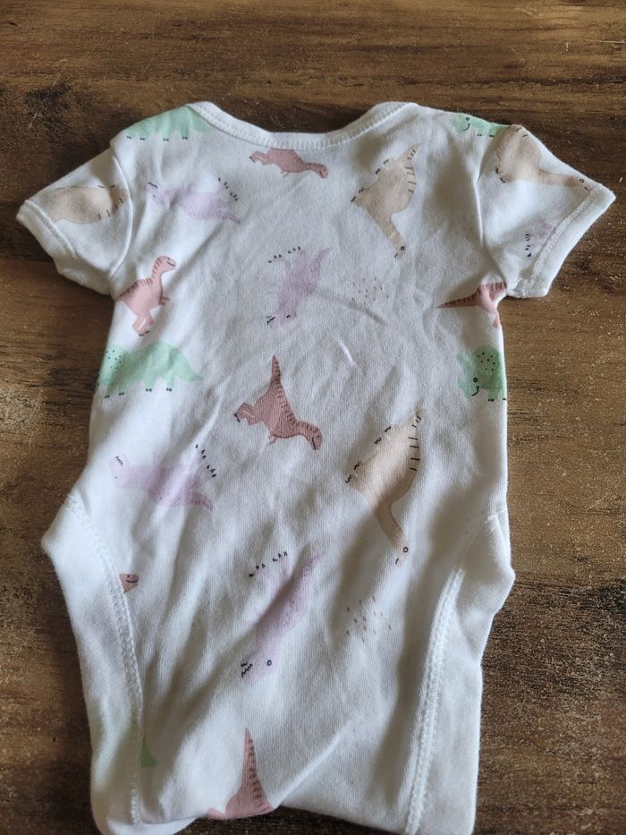Petit bodie Manche court Couleur blanc Dessin dinosaure Taille o mois voir prématuré Mi saison Attaché en bas Matière 100% coton