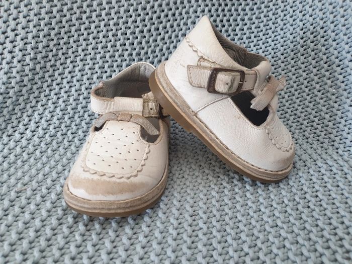 Babies blanches. Cuir frotté. Marque André. Pointure 20. #mimidacenfant #mimidacchaussures #mimidacchaussures20