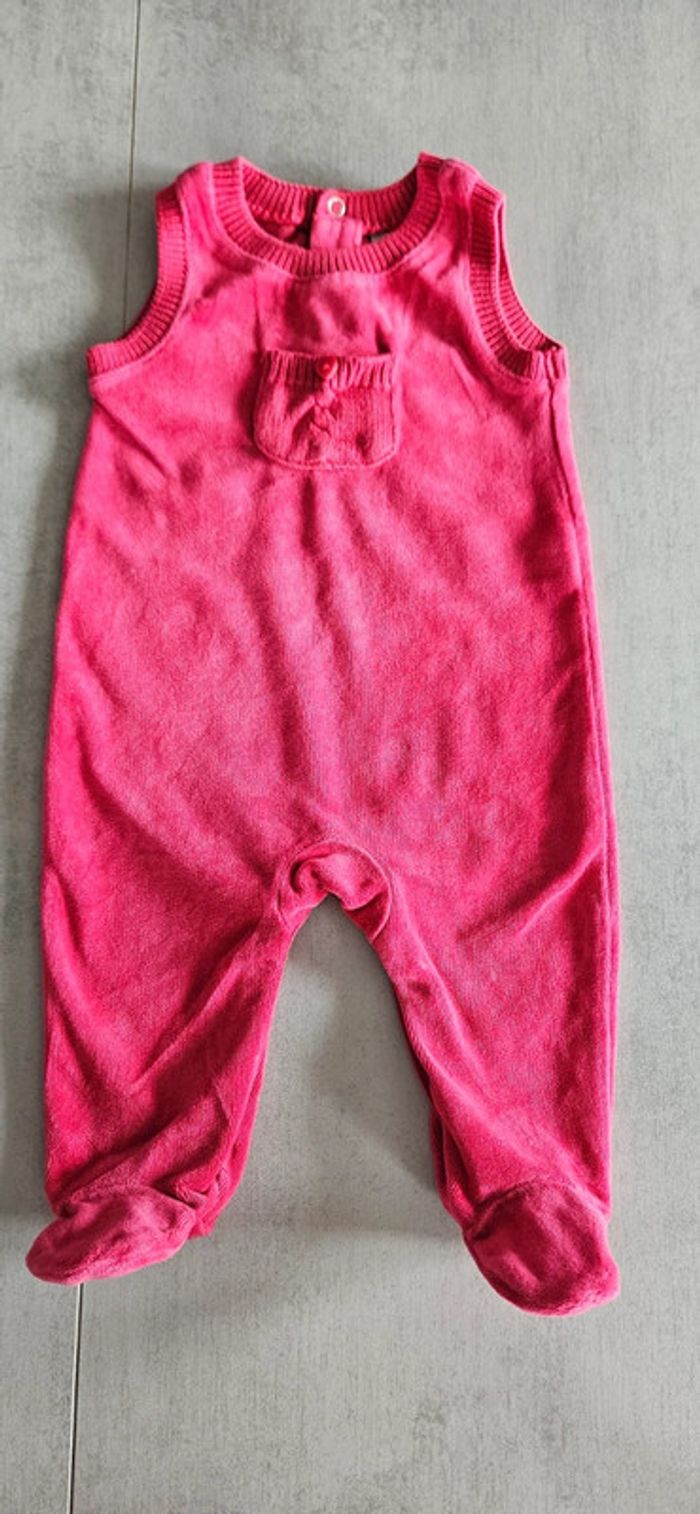 Pyjama velours sans manches couleur framboise Taille 6 mois Ouverture pratique entrejambe par pressions A3