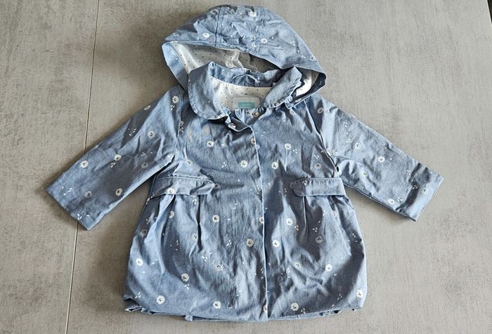 Manteau imperméable fille avec capuche amovible (se détache par boutons) Fermeture éclair impeccable Marque obaibi taille 6 mois Excellent état