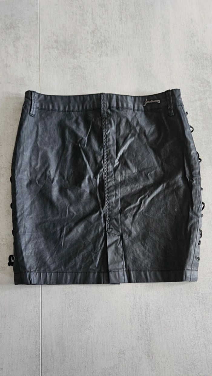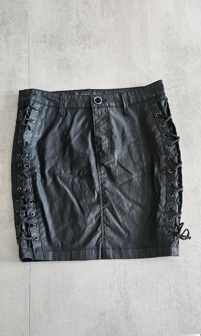Jupe type simili cuir noire avec lacets sur les côtés Très peu portée, pas d'imperfection. Marque stradivarius taille 36