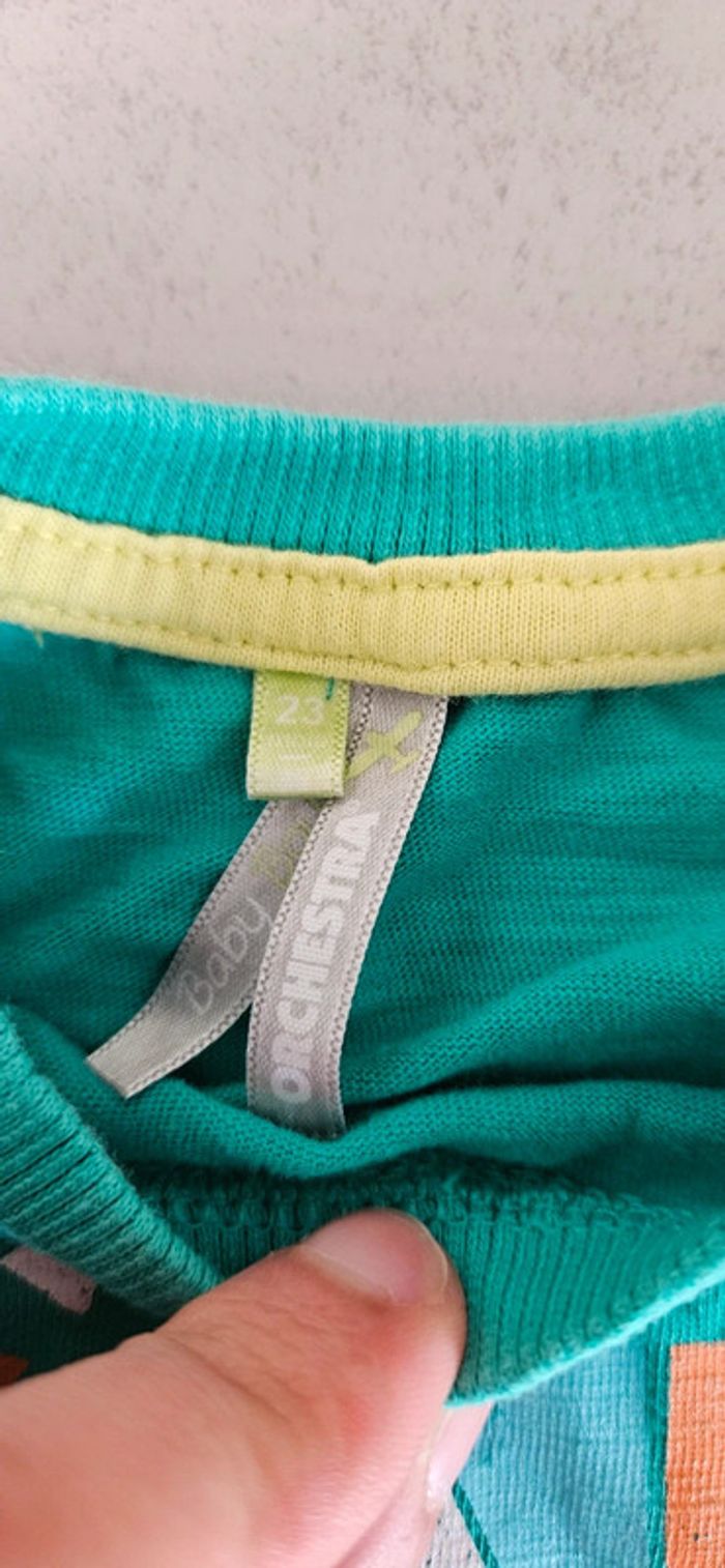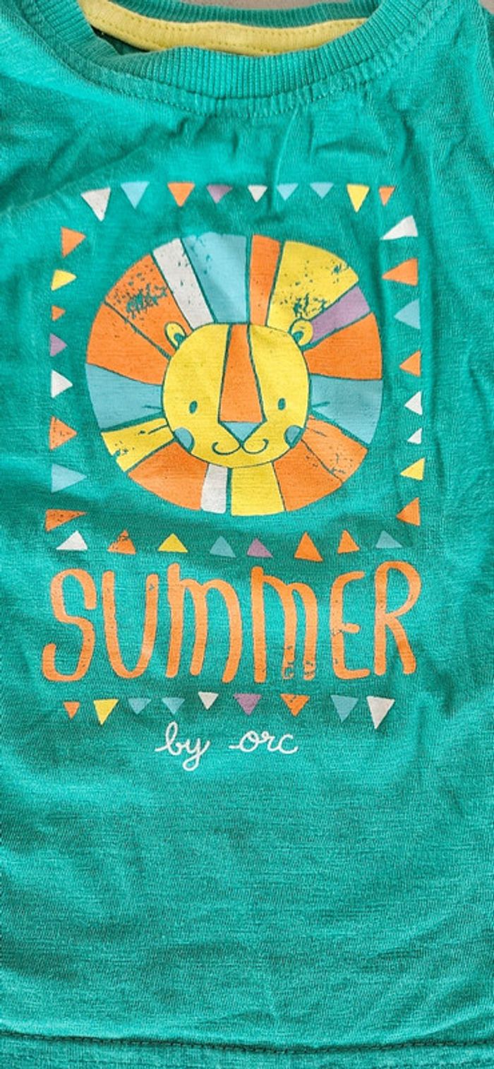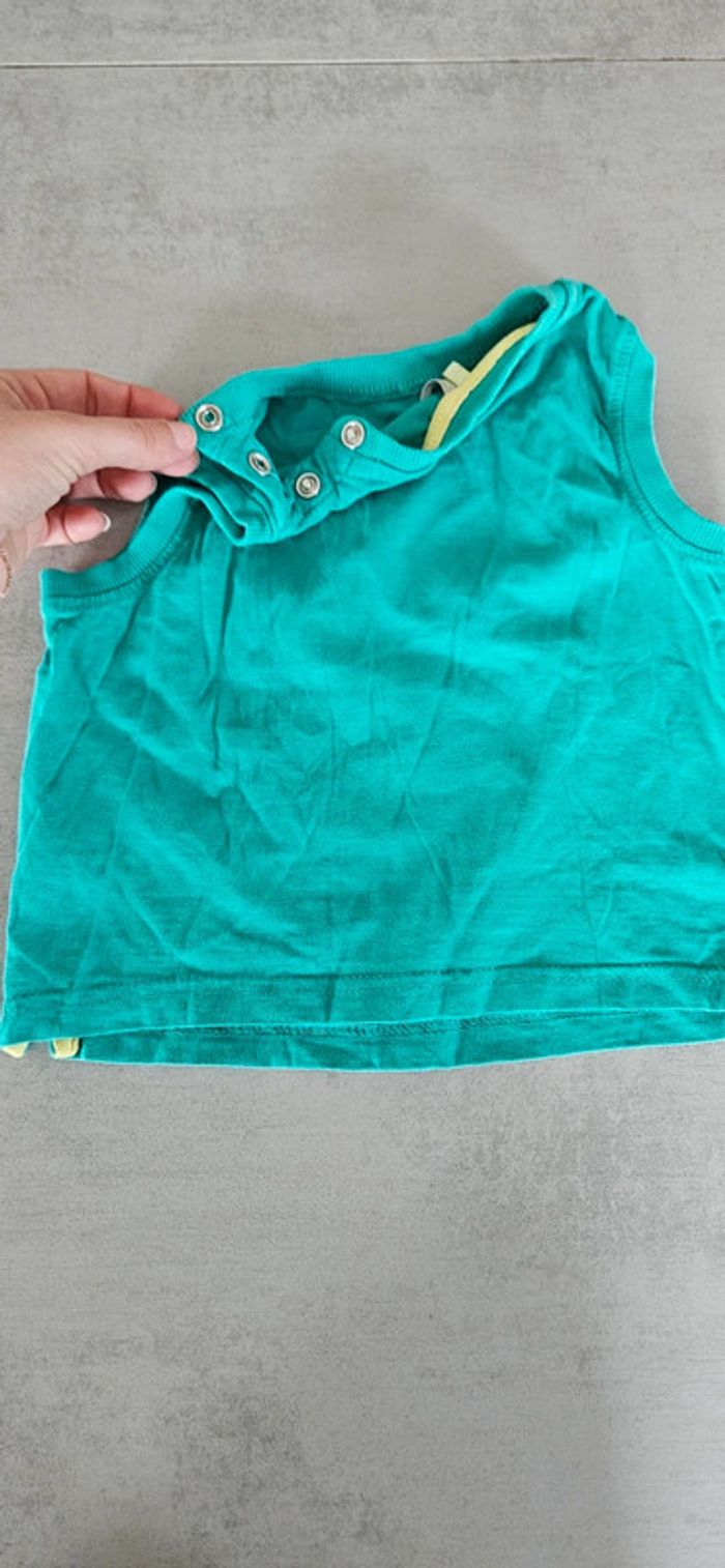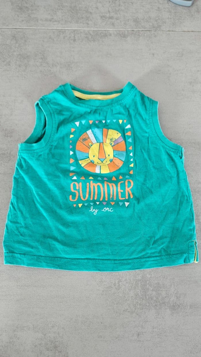 T-shirt sans manches vert avec boutons pression sur l'épaule. Motif summer. Marque orchestra taille 23 mois L3