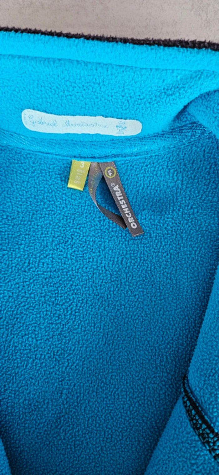 Gilet bien chaud polaire. Bleu marine intérieur bleu clair. Fermeture éclair ok. Taille 3 ans marque orchestra Très bon état L3