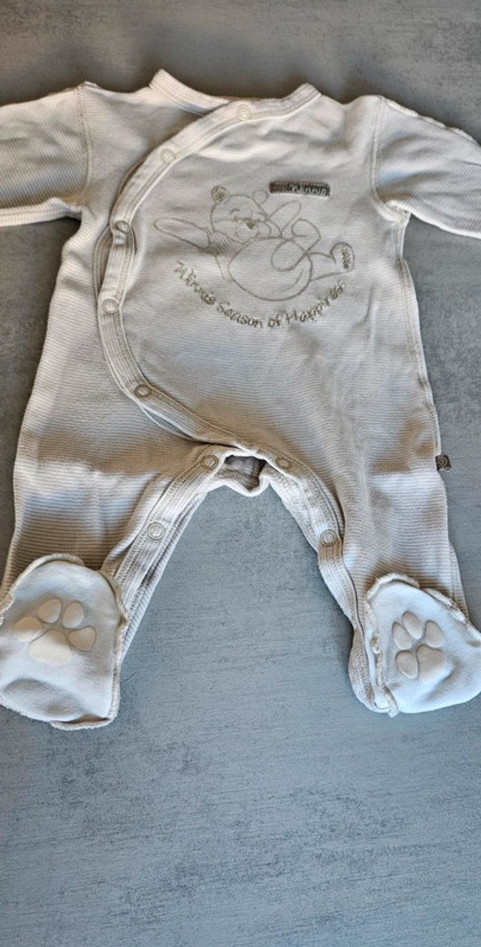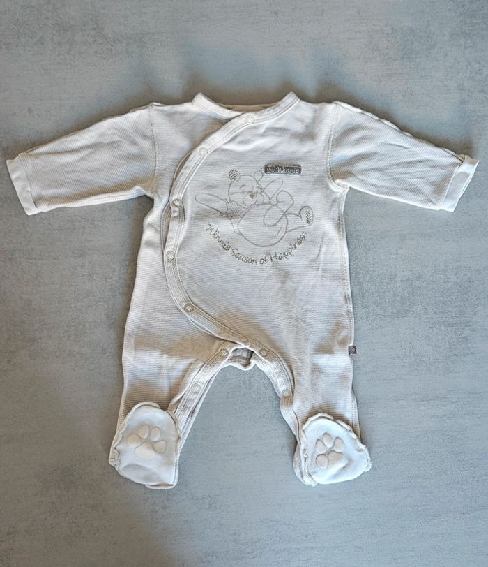 Pyjama léger winnie l'ourson mixte Rayé beige et blanc Ouverture pratique devant + entrejambe Pattes antidérapantes aux pieds Jamais porté, neuf Disney baby taille 1-3mois