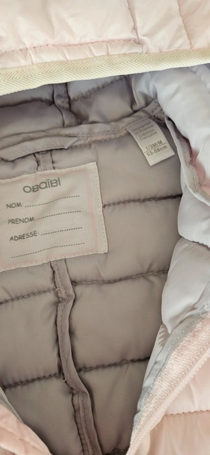 Combinaison matelassée rose pâle État neuf Taille 1/3 mois Marque obaibi