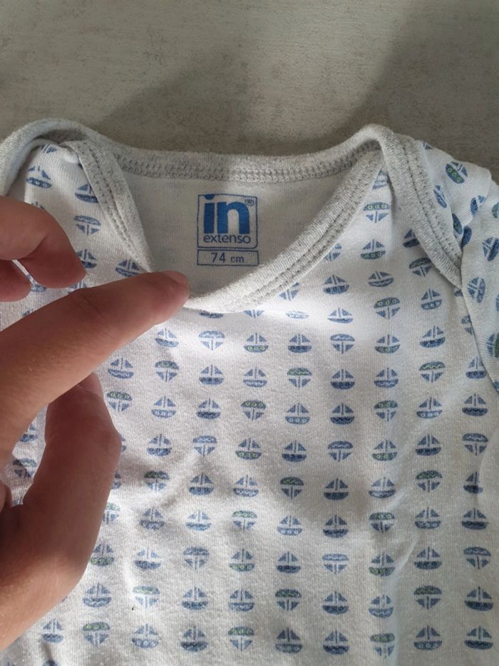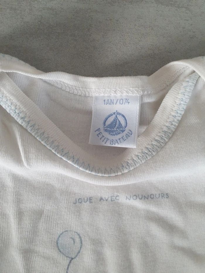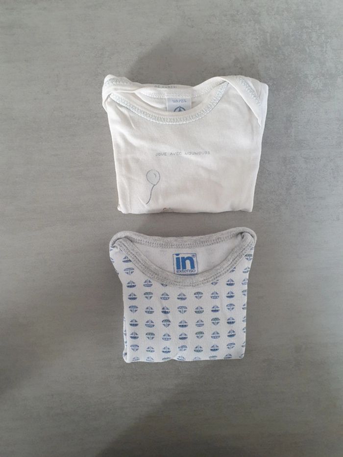 Lot de 2 body manches courtes taille 12 mois 1 petit bateau et l'autre in extenso Pas de tache ni trou