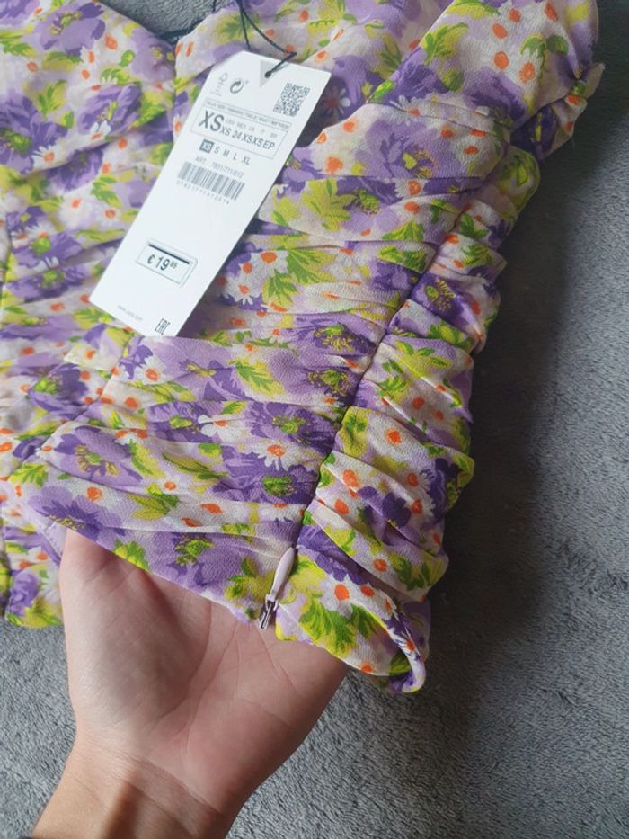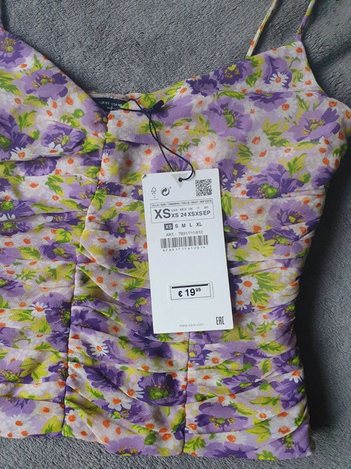 Top court violet Zara taille xs neuf avec étiquette Fermeture éclair sur le côté pour l'enfiler car près du corps
