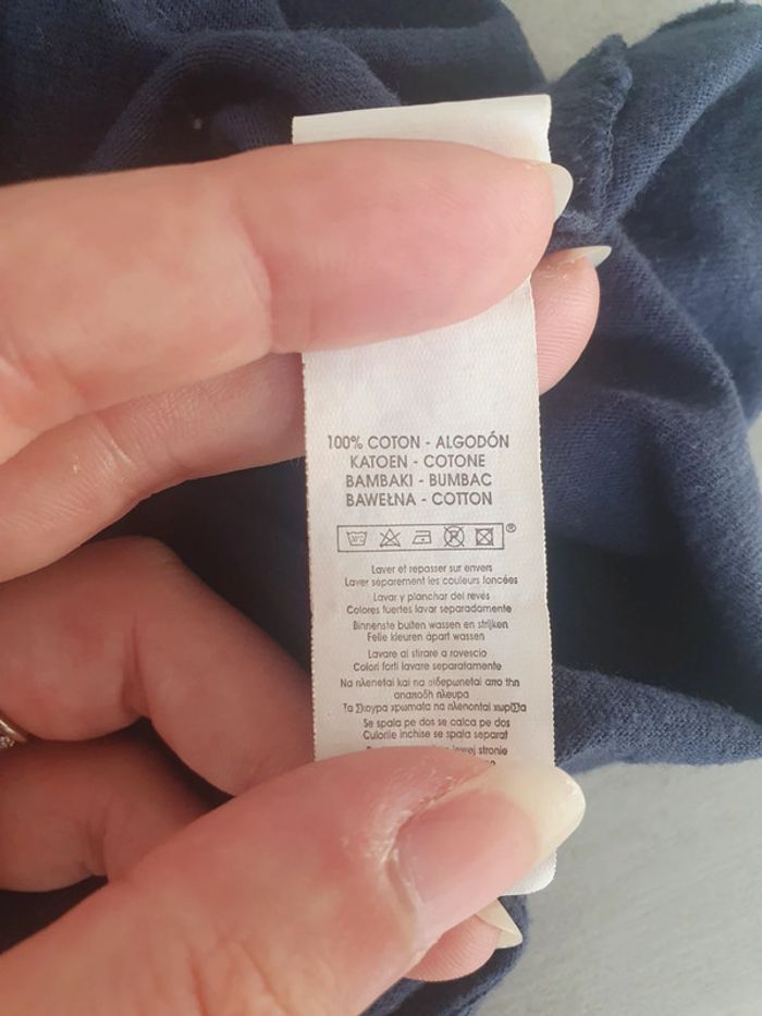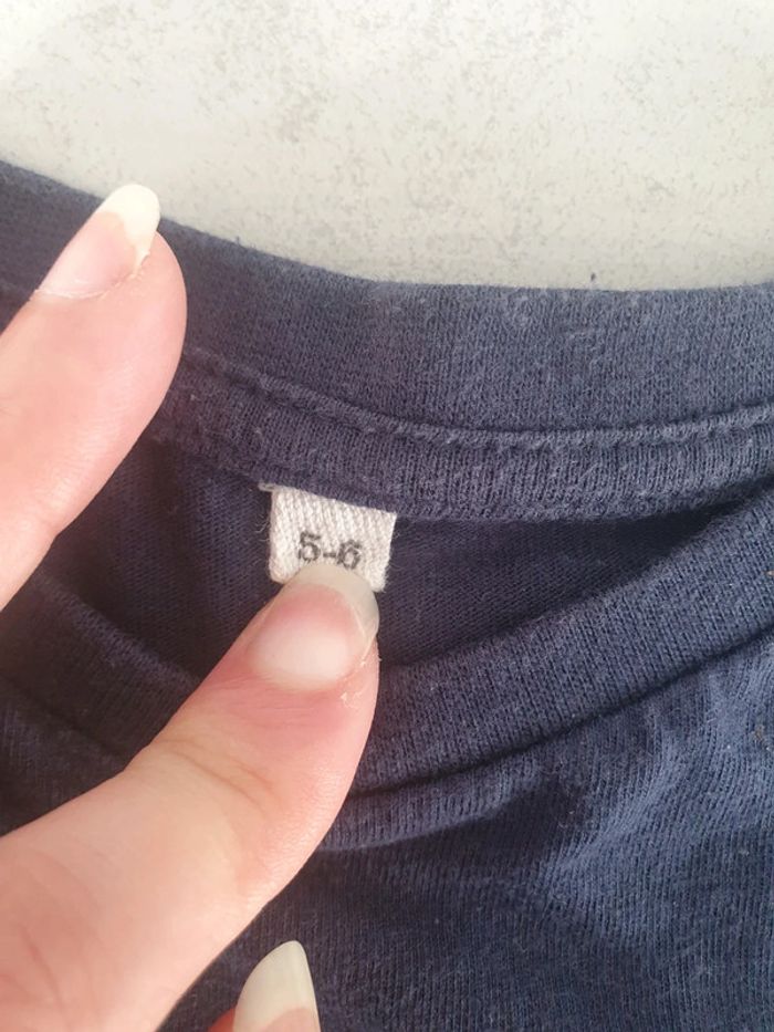 T shirt bleu marine manches courtes taille 5-6 ans très bon état 100% Coton donc matière douce, hypoallergénique, absorbante, isolante et résistante à la chaleur (L1)