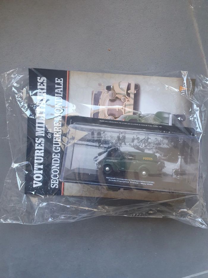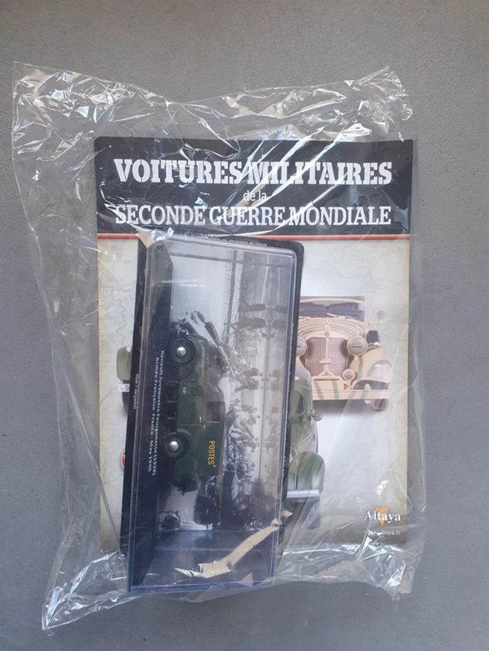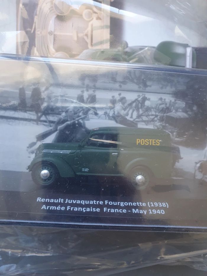 Livre voitures militaires de la seconde guerre mondiale avec 1 véhicule Renault Jura Juvaquatre fourgonnette de 1938 de l'armée française. Neuf sous blister prix neuf 14.99