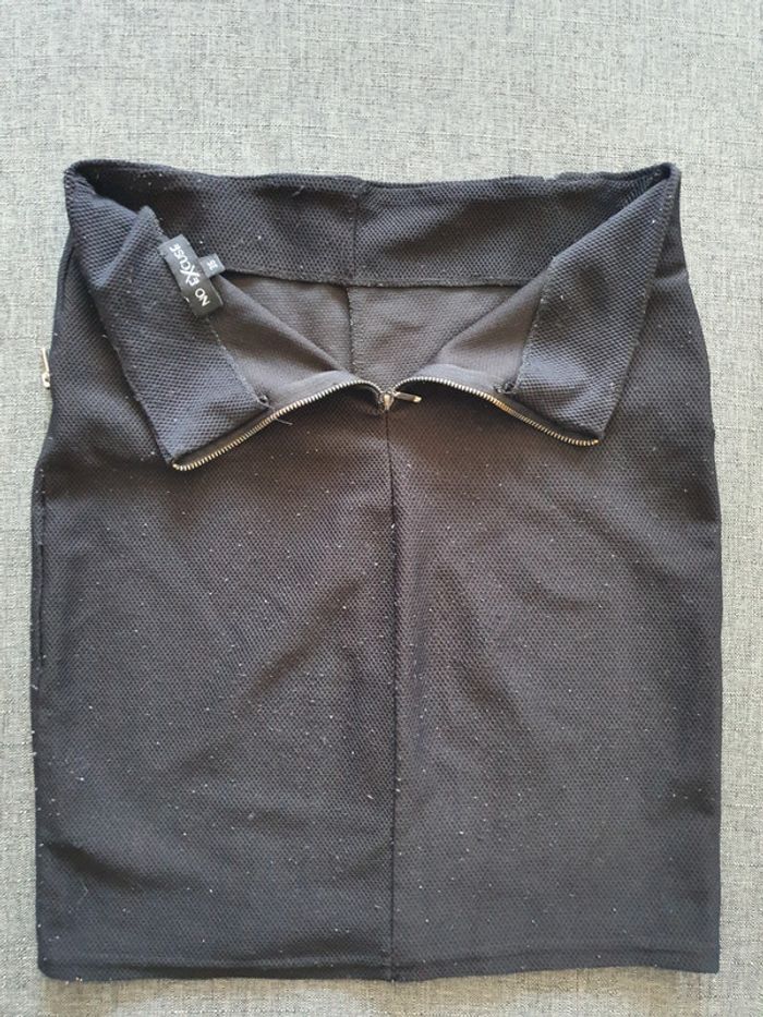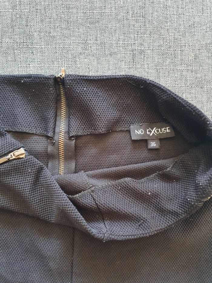 Jupe noire moulante taille 36. Marque no excuse. Bouloche un peu à l'arrière voir photo. Avec fermetures éclair sur le côté et à l'arrière pour l'enfiler