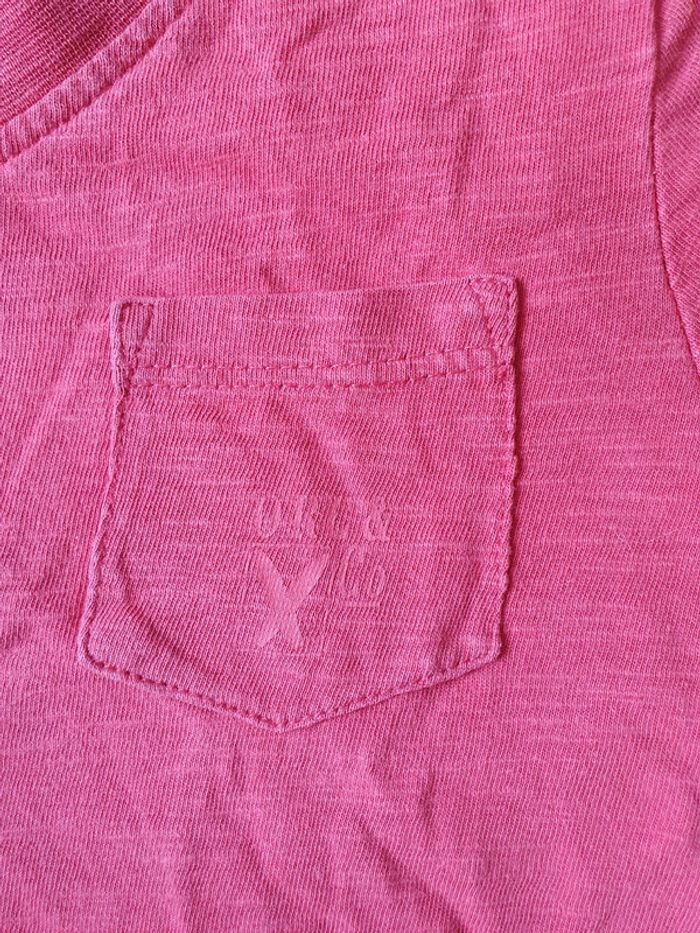 T shirt manches courtes couleur corail taille 4 ans marque orchestra col en V avec poche sur le devant (L1)