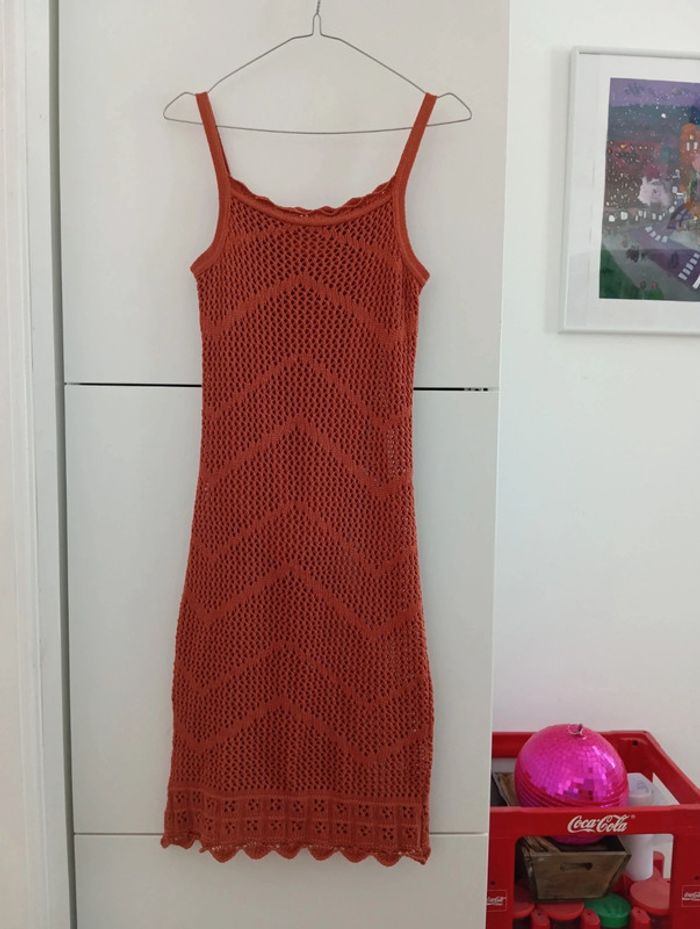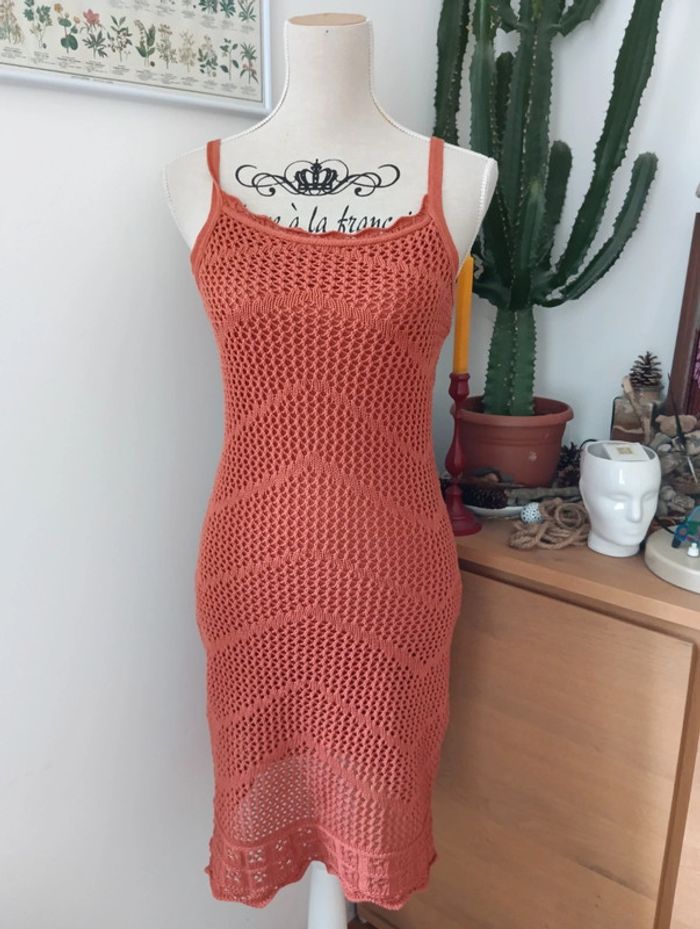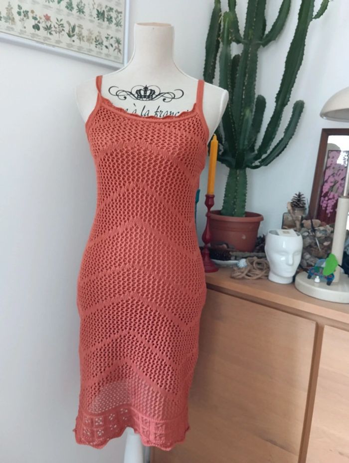 Robe vintage crochet doublée Matière souple extensible couleur terracotta taille 36 À confirmer avec les mesures Aisselles 44cm Longueur 80cm