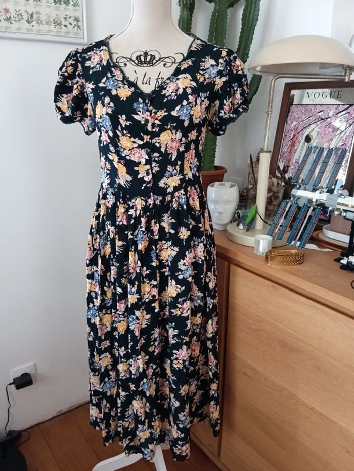 Robe vintage fleurie entièrement boutonnée taille 38/40 - photo numéro 1