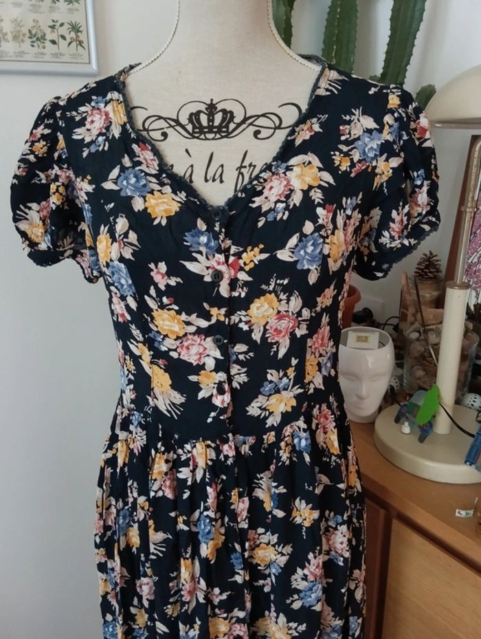 Robe vintage fleurie entièrement boutonnée taille 38/40 - photo numéro 5