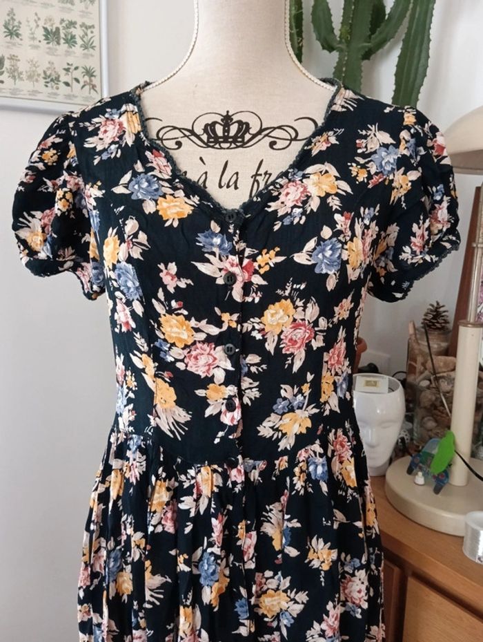 Robe vintage fleurie entièrement boutonnée taille 38/40 - photo numéro 2
