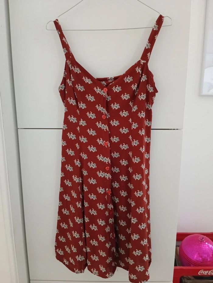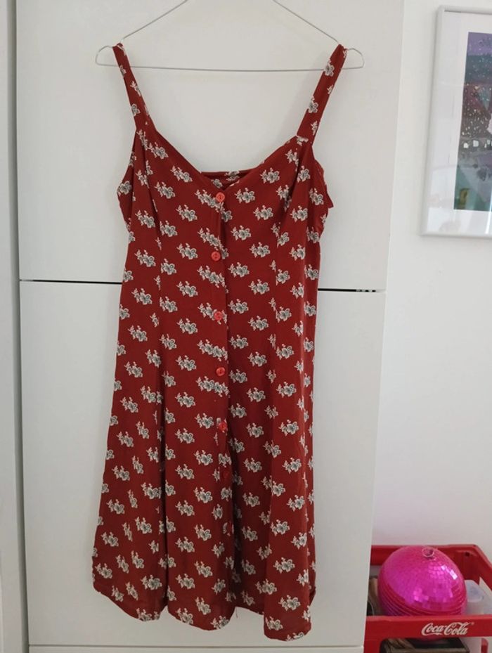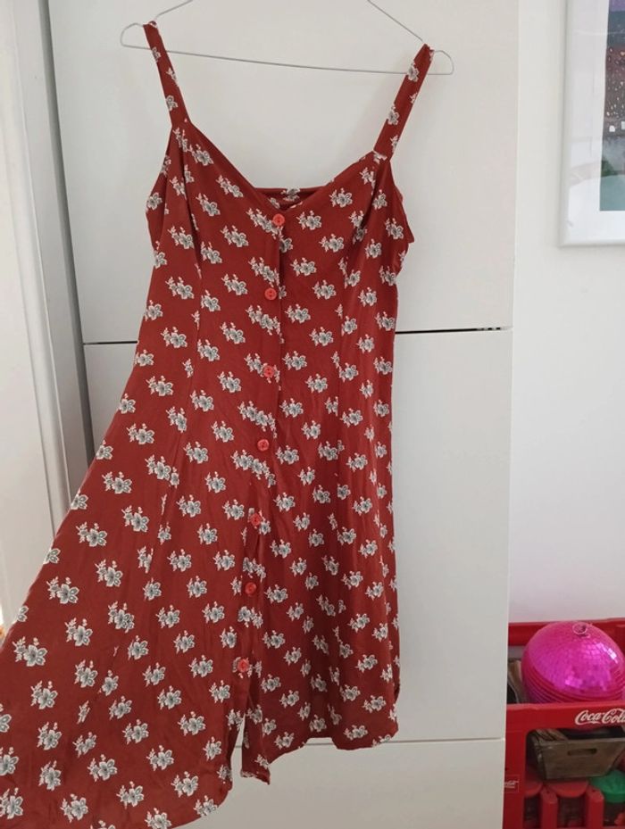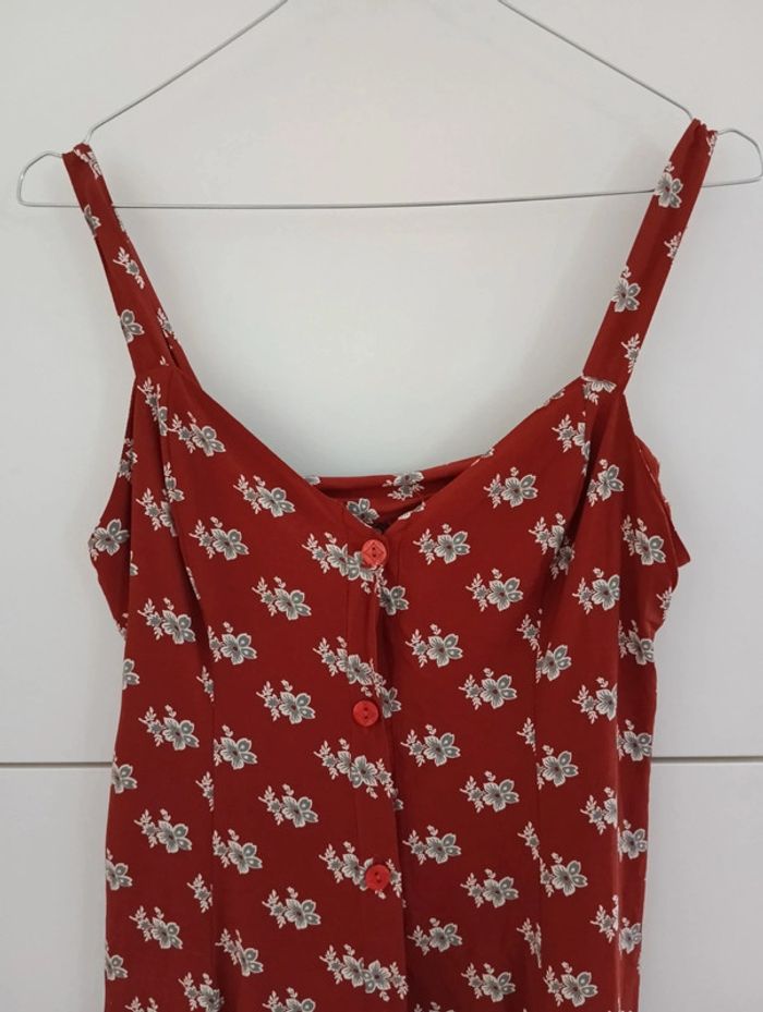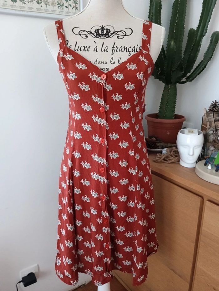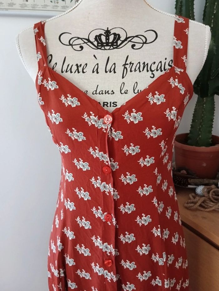 Mini robe à bretelles vintage boutonnée à fleurs taille 36 estimée à confirmer avec les mesures. Pas d'indication de matière mais semble être du viscose. Aisselles 45cm Longueur 87cm