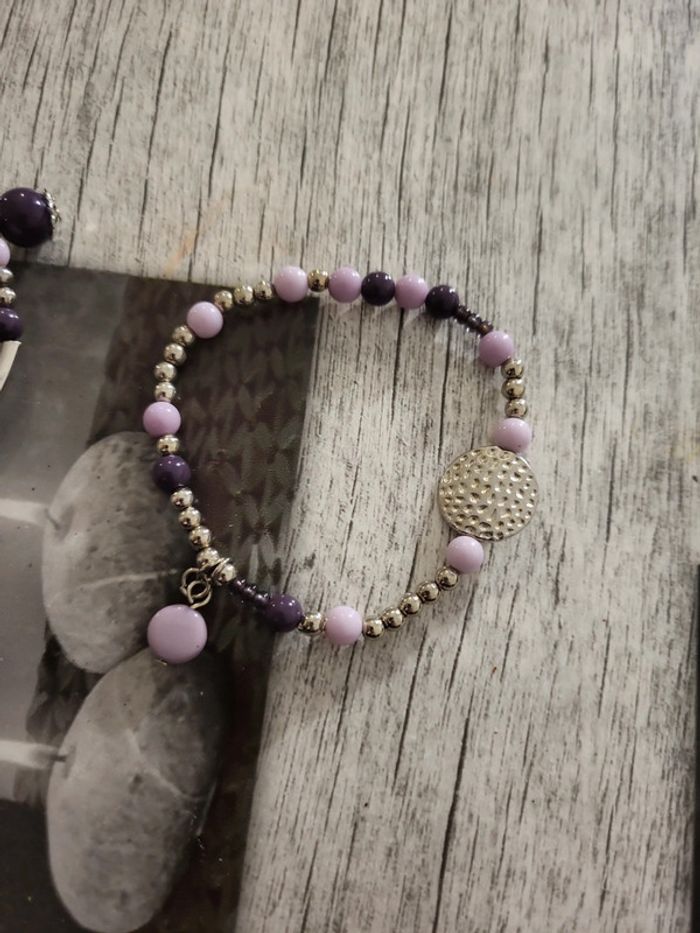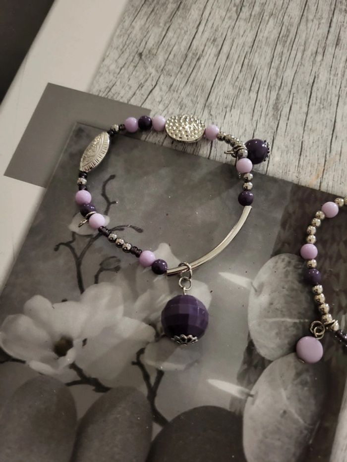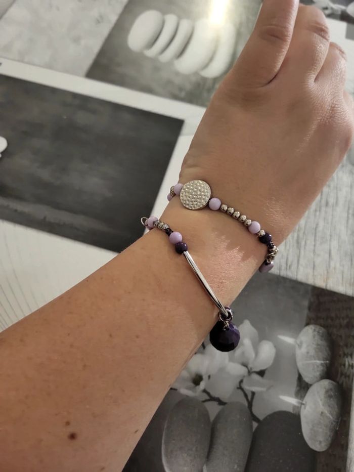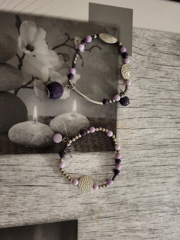 Lot de 2 jolis bracelets argent et mauve Breloques