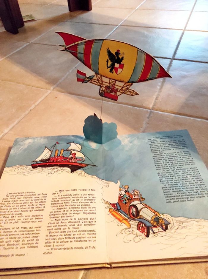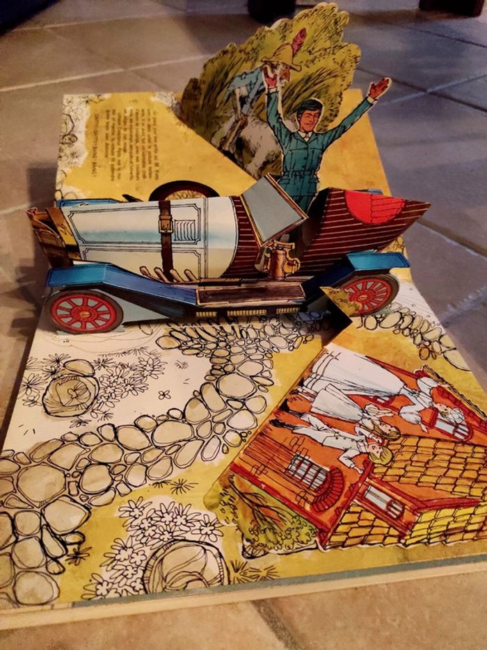 Chitty Chitty Bang Bang édition français Ian Fleming adapté par Albert G. Miller Date d'édition : 1969 Rouge et Or Les animations fonctionnent sauf 2 mais un bricoleur (se) peut les assembler à nouveau