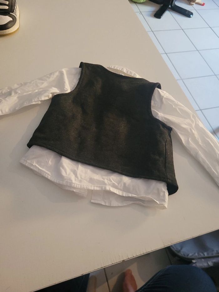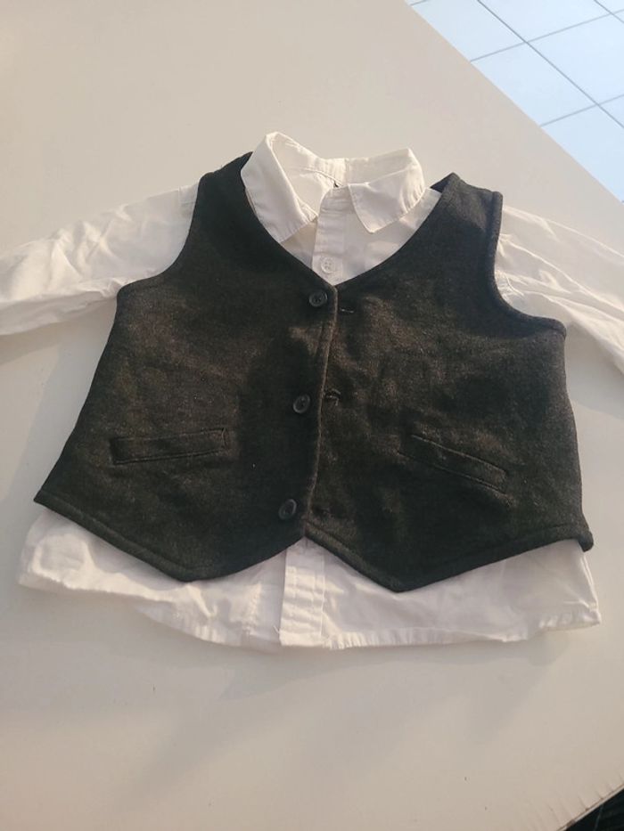 Bel ensemble bébé chemise blanche et et gilet gris Idéal cérémonie 18 mois