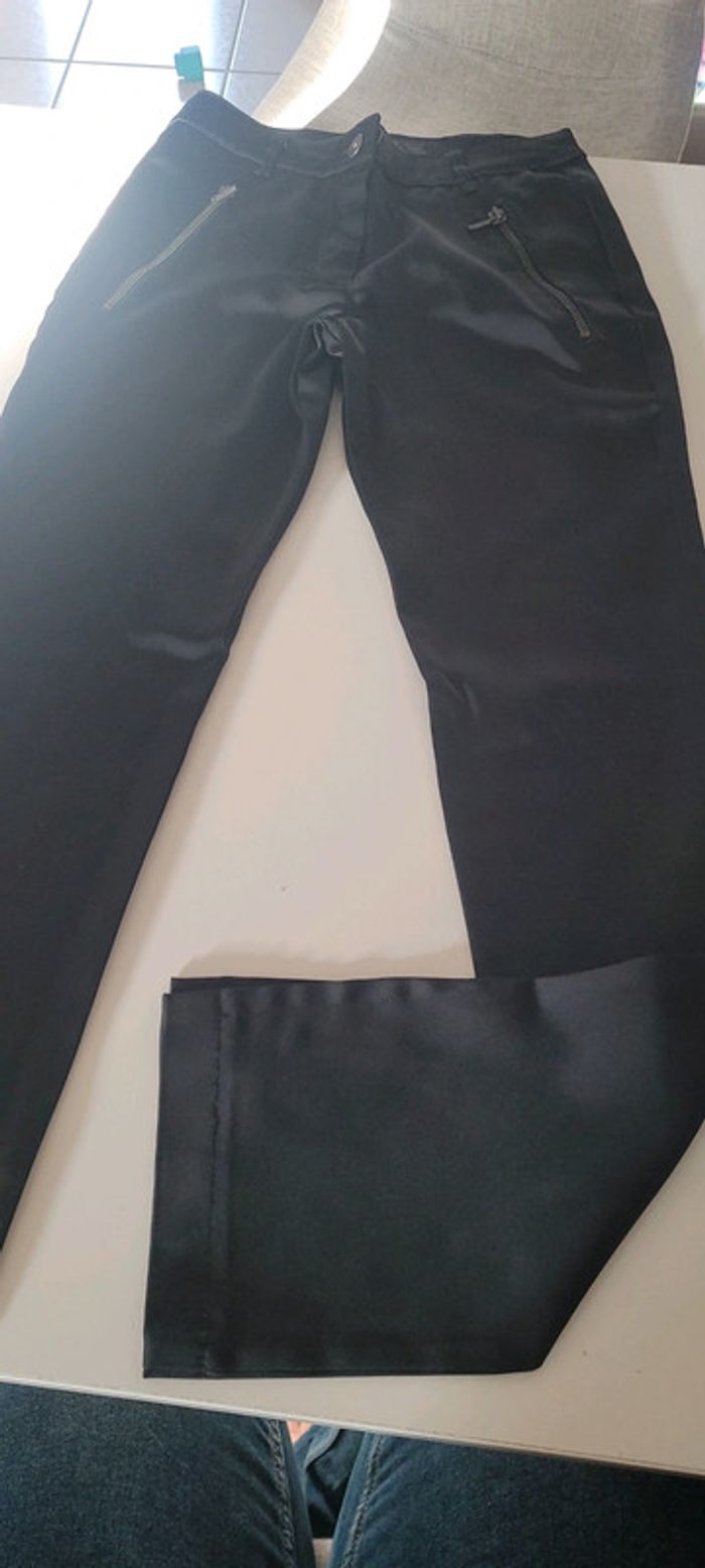 Joli pantalon femme noir effet satiné fente en bas de la jambe extérieure Jennyfer taille 36