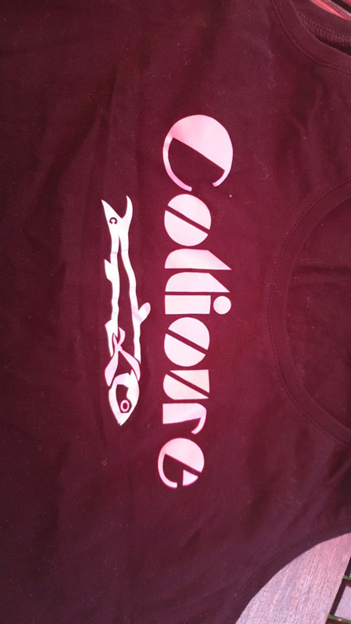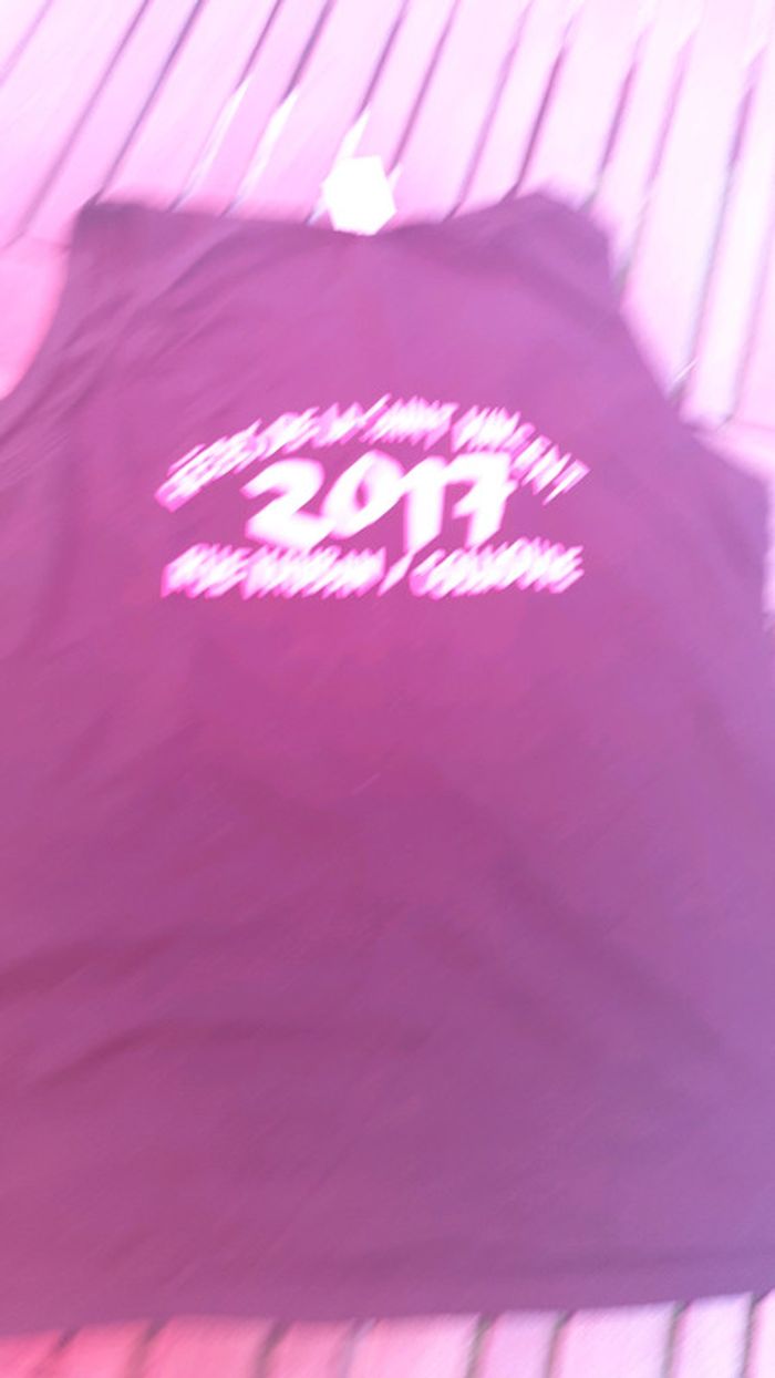 Noir et les ecritures sont roses flash ms j'arrive pas a l'avoir bien net photo Taille XL mais plutôt L