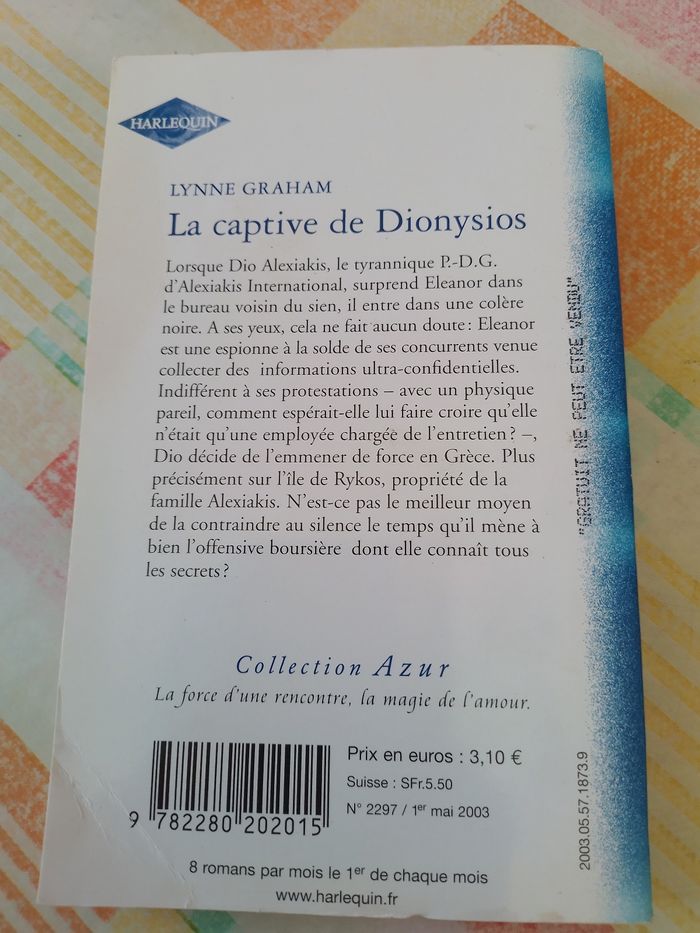 Livre harlequin collection azur couverture un peut abîmé